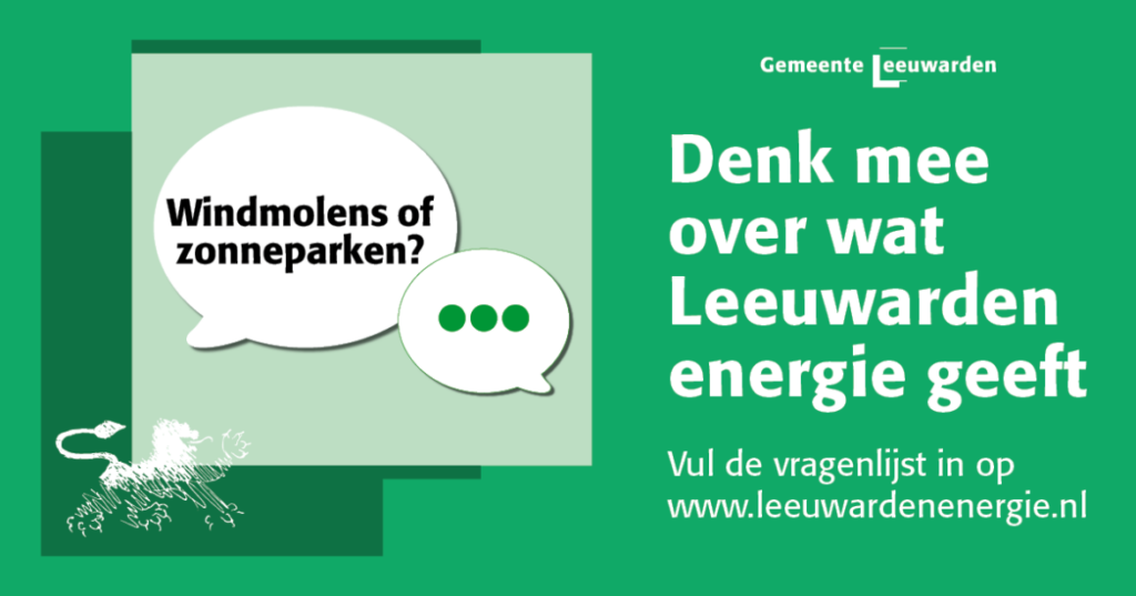Geef uw mening over onder andere het opwekken van schone energie en energiebesparing. Vul daarvoor de vragenlijst in via: www.leeuwardenenergie.nl. Het invullen kost u maximaal 15 minuten.